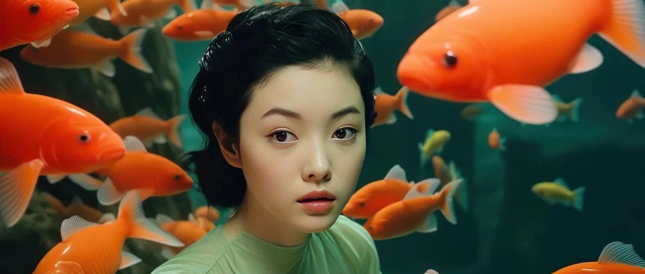 Prompt:In Sandy Skoglund style Close up shot There is a beautiful Chinese young woman in an underwater playground. --ar 16:9 --v6